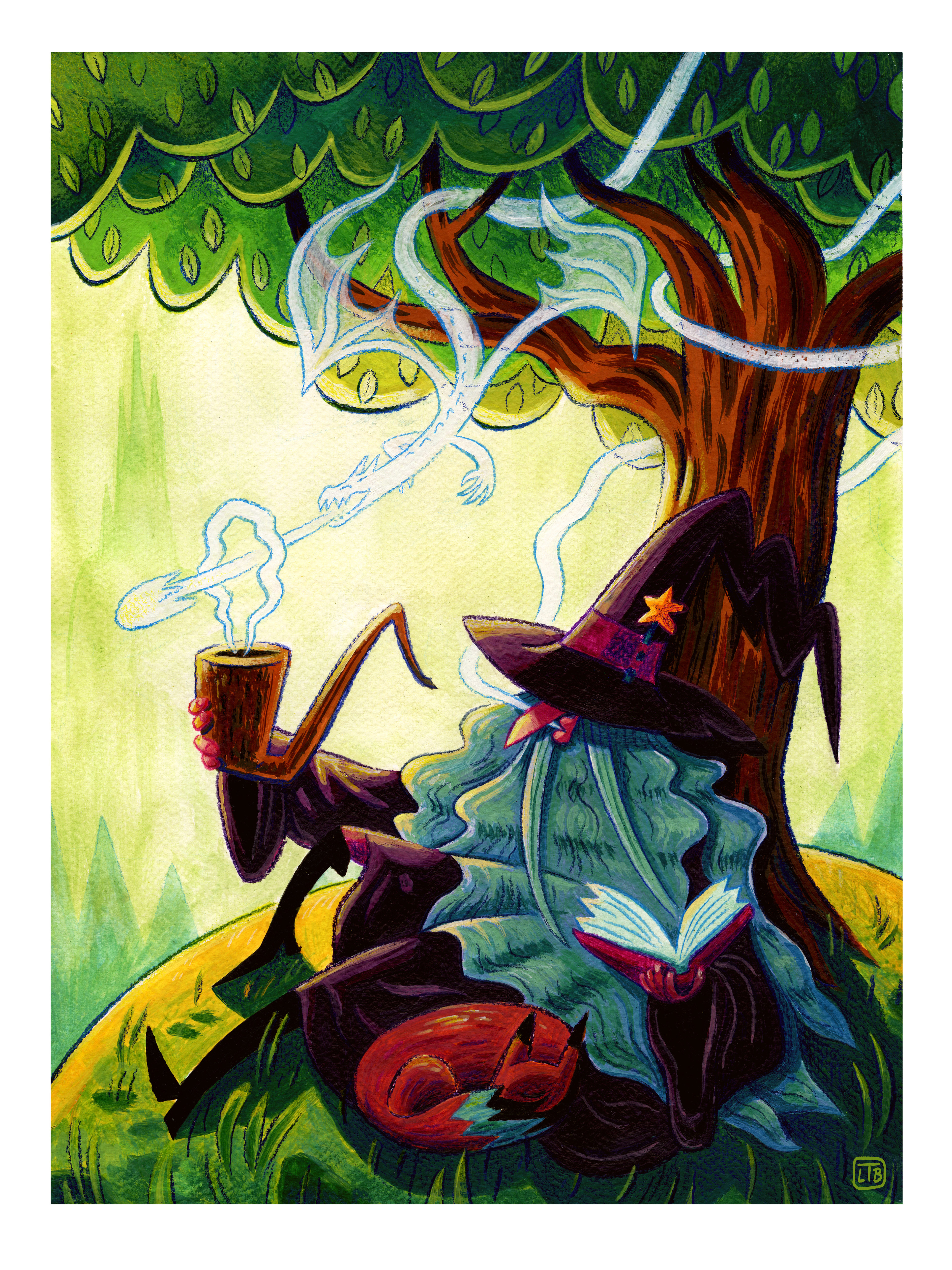 Created with Gouache and colored pencil on watercolor paper.